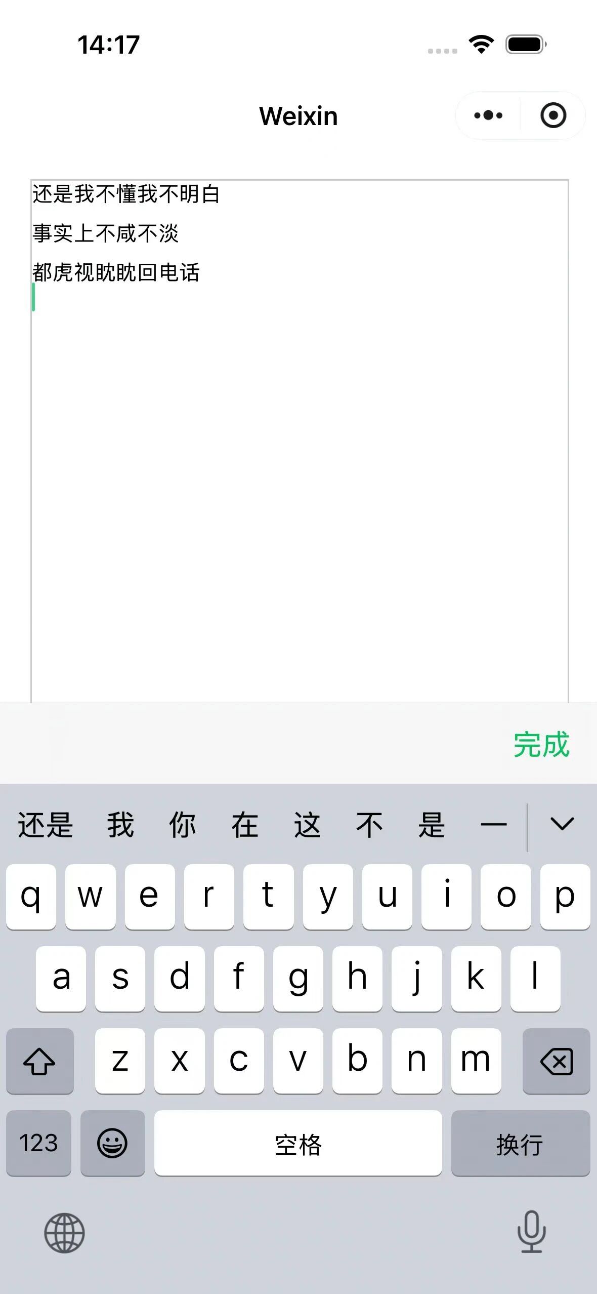 在textarea中输入多行文本,手动使用换行键进行换行,再随机行进行删除,删除到换行符以后,会导致光标的行高失效,导致光标视觉上看起来和上一行紧紧的贴在一起,请微信团队的大大看一下给出排期,大概多久能修复这个问题,在哪个基础库版本可以修复呢?