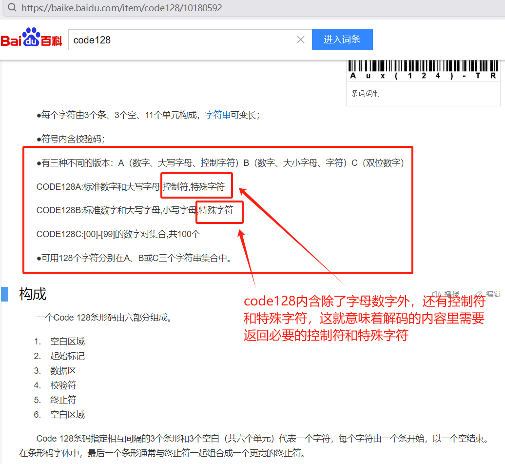 首先,需要解读CODE128码制规则,如下图百科code128: