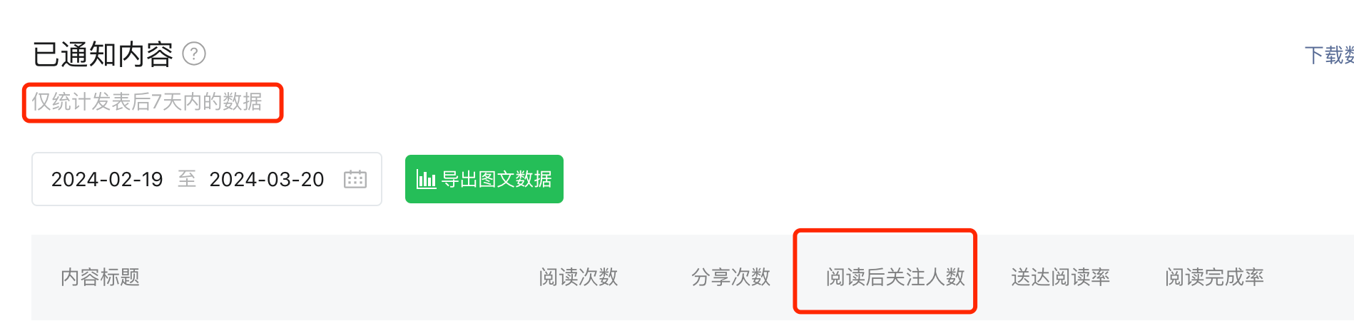 3、阅读后后关注人数有一个时间维度,是说文章发布7天内时间内阅读的,就是阅读后关注,超过7天再阅读这篇文章,再阅读文章关注,都算文章内关注,是吗?