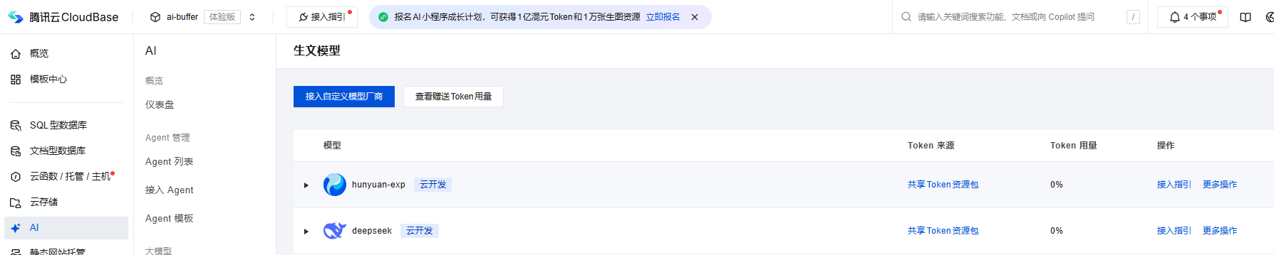 我参加了AI小程序成长计划,生文模型中的混元和Deepseek不是在开发和小程序上线时都能同时使用?