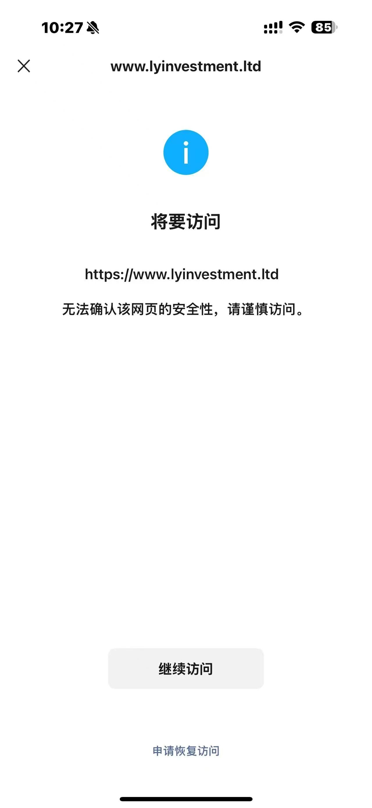 https://www.lyinvestment.ltd/微信内打开提示:如需浏览,请长按网址复制后使用浏览器访问,网站无安全问题,是因为网址后缀问题吗