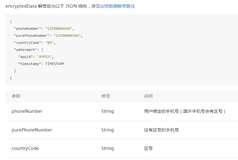 但是官方接口文档中,获取手机号的接口说明如图四;