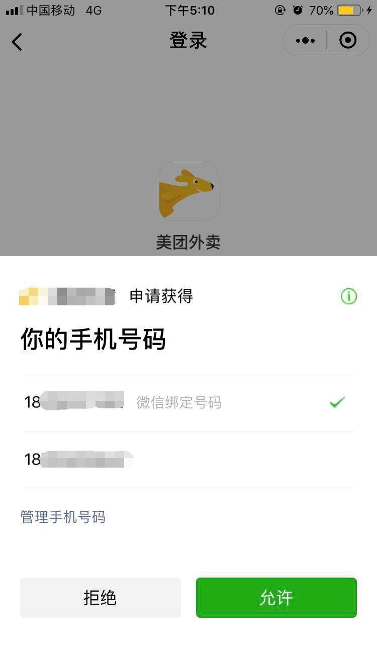 微信小程序中点击微信授权登录,获取微信绑定的手机号以及之前小程序绑定过的手机号码的,例如图二;