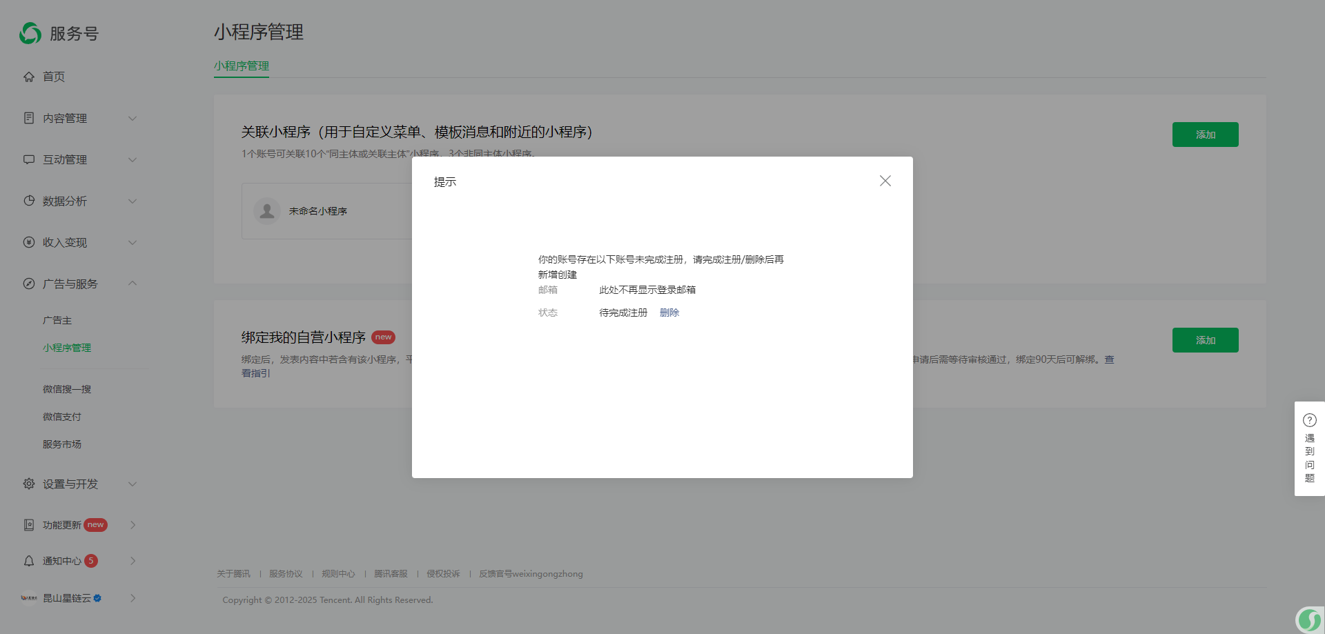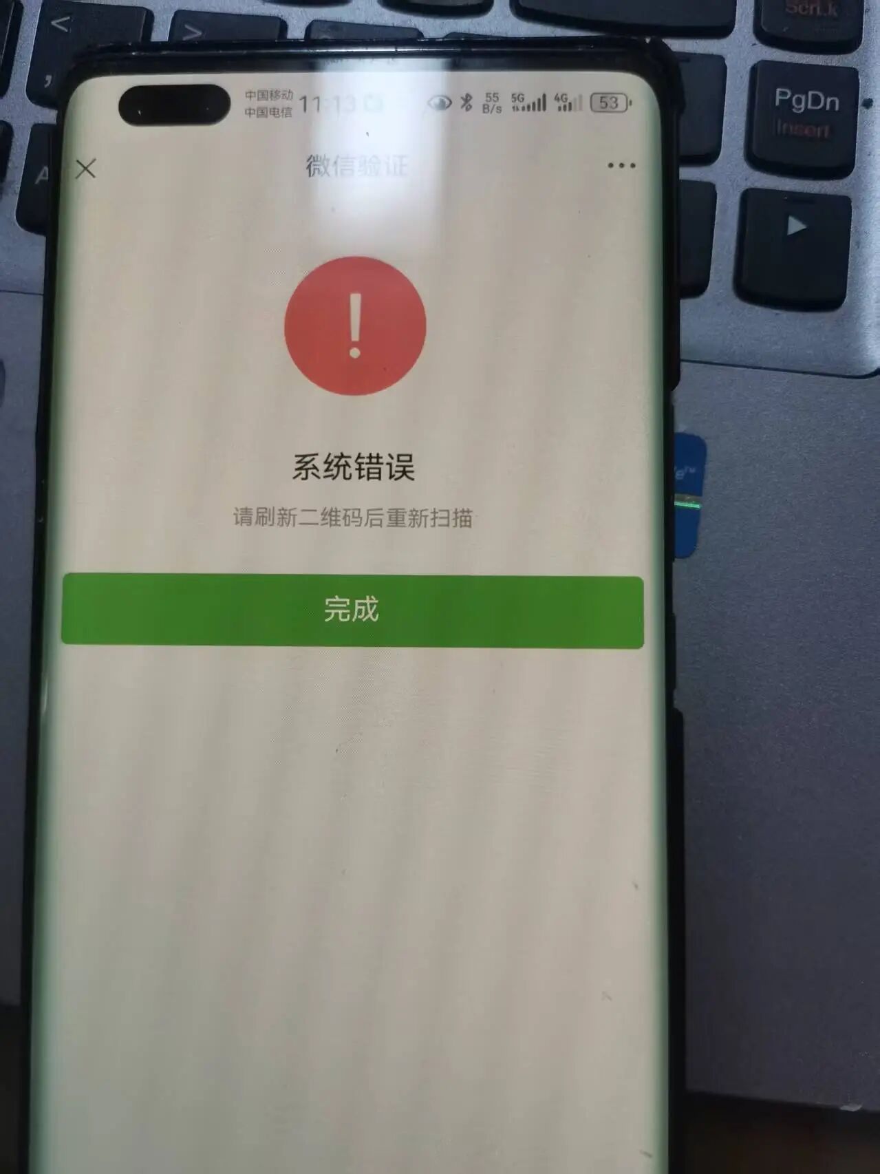 公众号上快速创建并认证的小程序,到了管理员身份验证,扫码一直提示“系统错误,请刷新二维码后重新扫描”,刷新后重新扫描也是一样,换浏览器也不行,换微信也不行,新注册一个邮箱,还是不行!还是同样的提示。
