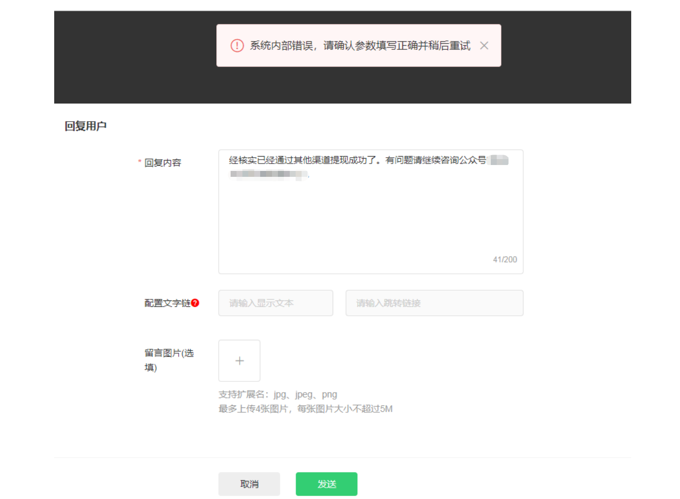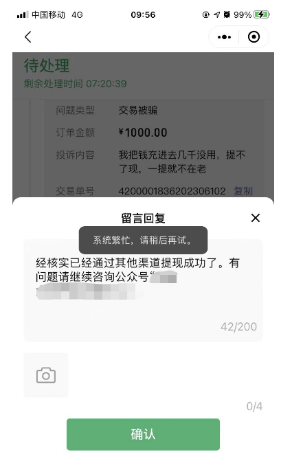 账号无违规和处罚,只有1个投诉,用手机端和PC端都无法回复。提示系统内部错误