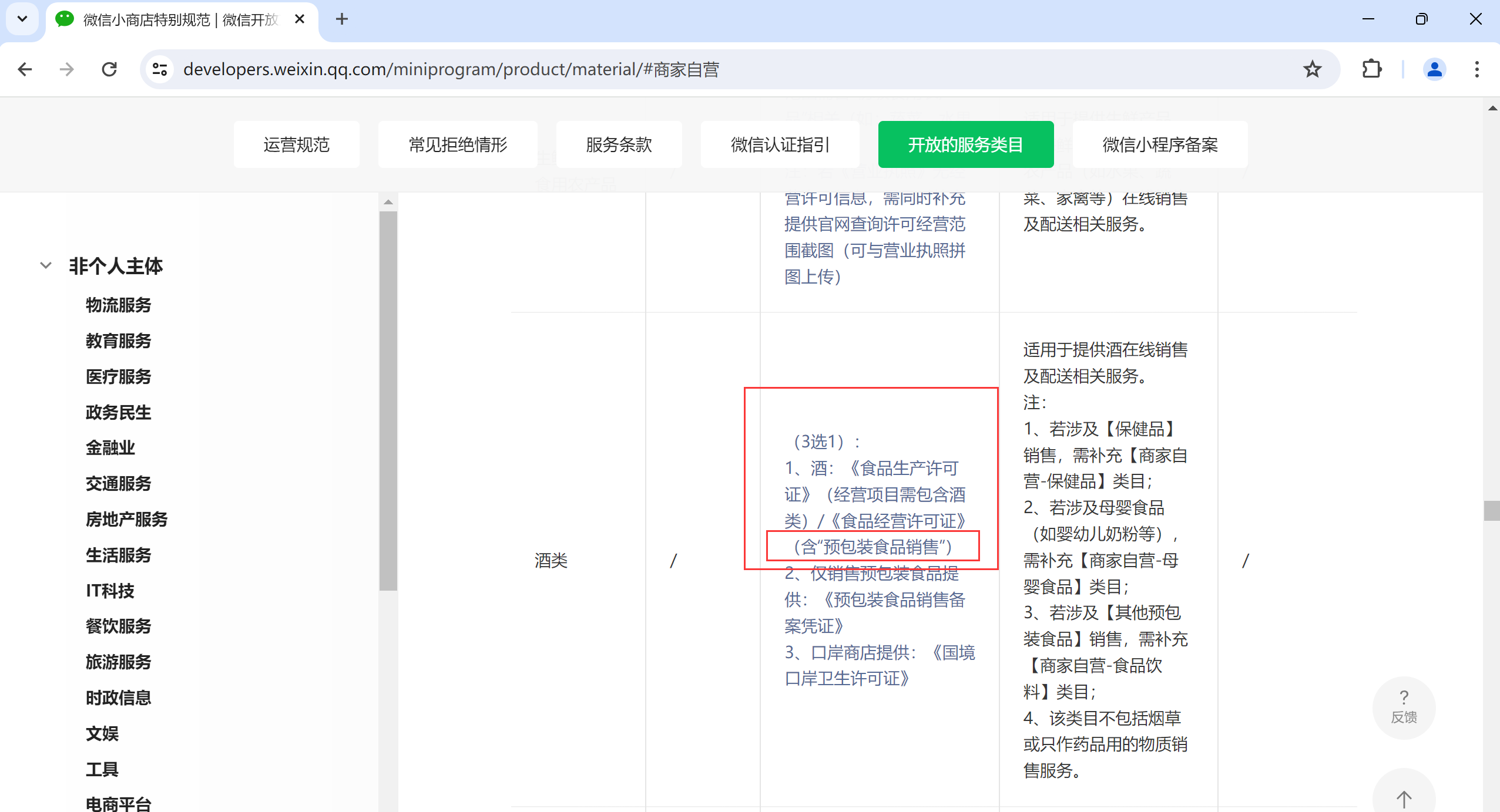 因此酒类食品经营许可证上无法添加标准“预包装食品销售”。