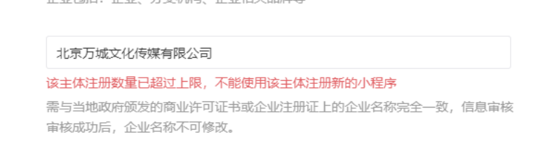 各位同行,名下用的新注册的营业执照申请了注册小程序,申请第六个的时候就被提示,该主体上限,这是什么原因呢,是因为前五个财务没打款的原因吗?找不到相关了解的客服,恳请各位同行帮我看看