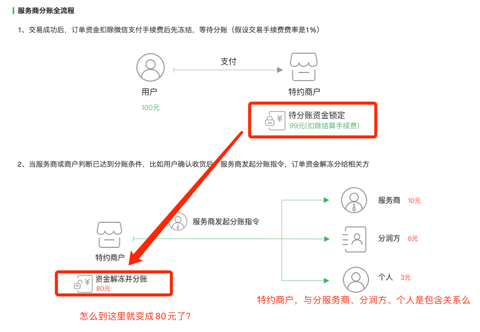 分账方:特约商户。商户号是谁的就收款到那里,资金是从那里分账出去。
