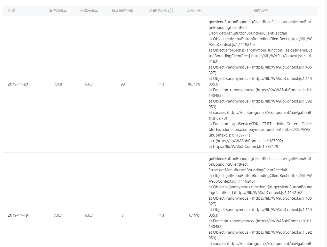 at Object.getMenuButtonBoundingClientRect (https://lib/WASubContext.js:1:1119240)at Object.p.(anonymous function) [as getMenuButtonBoundingClientRect] (https://lib/WASubContext.js:1:1142275)at Object.