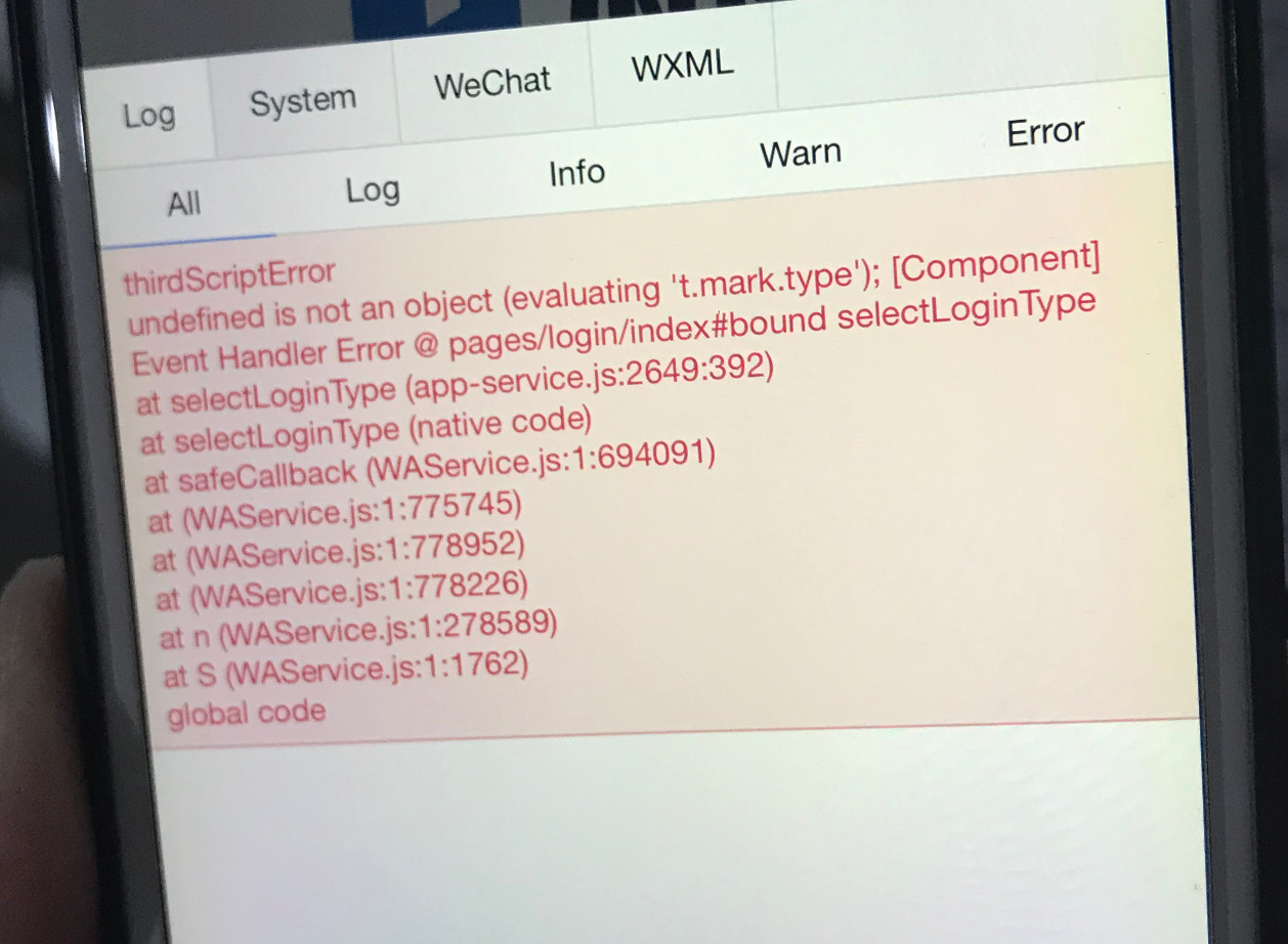 检查 /pages/login/index.js 的代码,有个对象未定义
