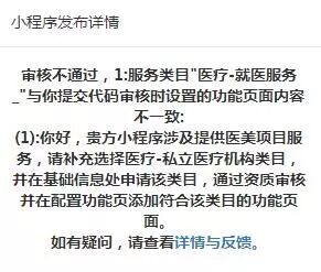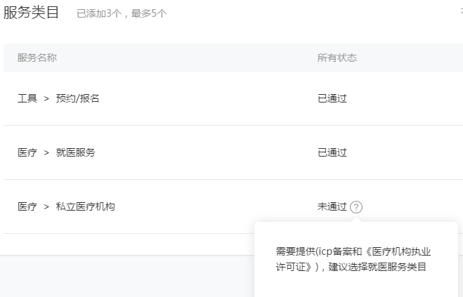 我们公司是一个平台型医疗互联网公司,做的小程序是一个第三方医疗美容信息发布平台,第一次审核时要求我们选择就医服务类目,后来我们就根据要求添加了就医服务的类目,但是再次提交审核时,又要求我们添加“私立医疗机构”类目,但我们不是具体的医疗机构啊?