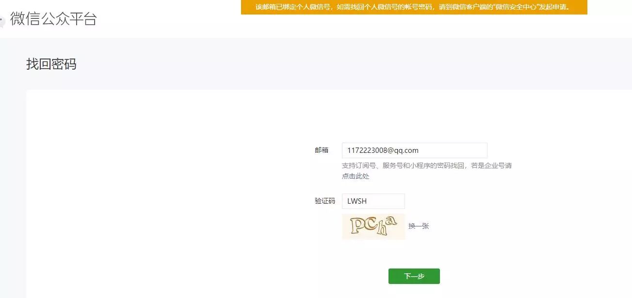 在登录页面,点击找回密码,输入邮箱,就提示那个,我用这个邮箱登录不行,我用我的微信账号密码登录也不行