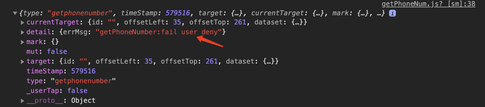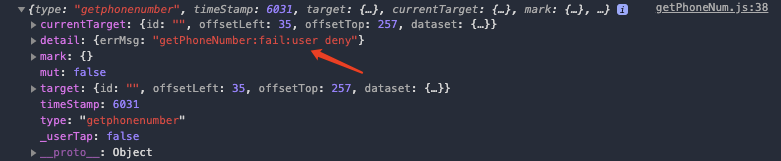 对比可以发现,安卓系统fail是":",苹果系统后面是空格。如果开发者没有仔细注意到区别,会导致用户在拒绝获取手机号后出现业务逻辑上处理的BUG。
