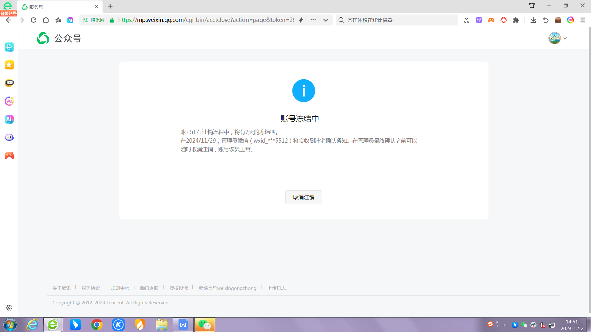 公众号运营者注销后9天了,管理员扫描登陆公众号没有确认注销的地方