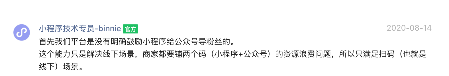 小程序向公众号引流有什么问题呢?不明白官方对此限制的意义,都是同一主体的小程序和公众号,还要把两者的粉丝群割裂吗?