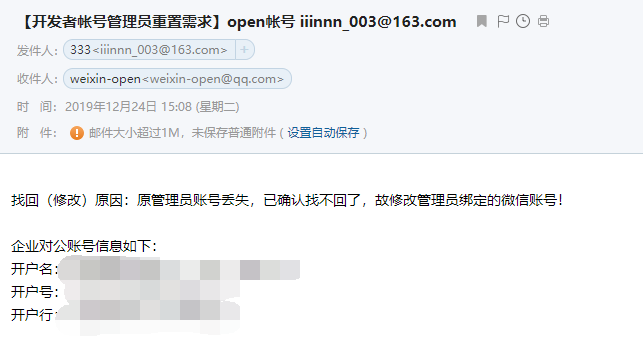 请问修改管理员微信账号,已经发送了邮件(2019-12-24发的),多久能处理?