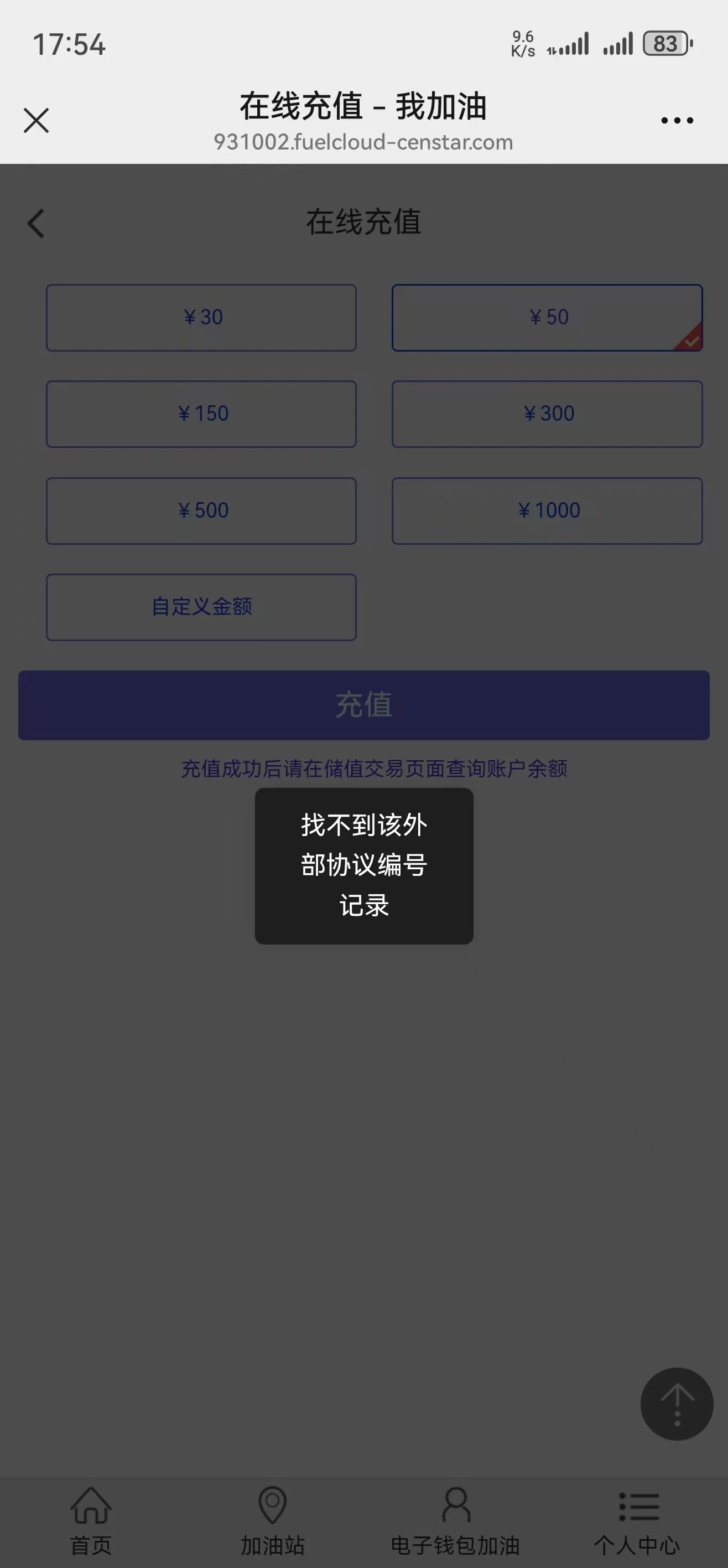 服务号内充值显示找不到该外部协议编号记录是什么原因?