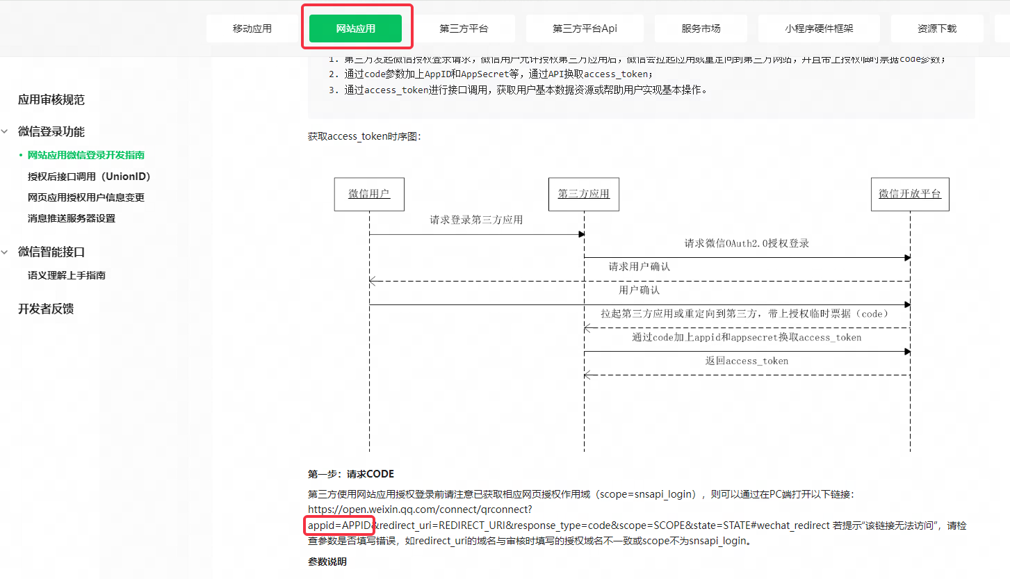 如题,请问我已经有公众号的appid,现在想上线网站应用,这个接口这里可以直接用公众号的appid和相关秘钥吗