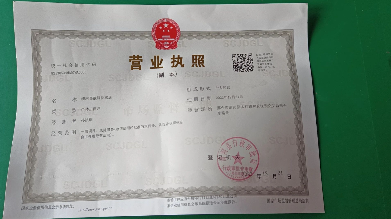 名称:清河县靓鞋洗衣店(个体工商户)