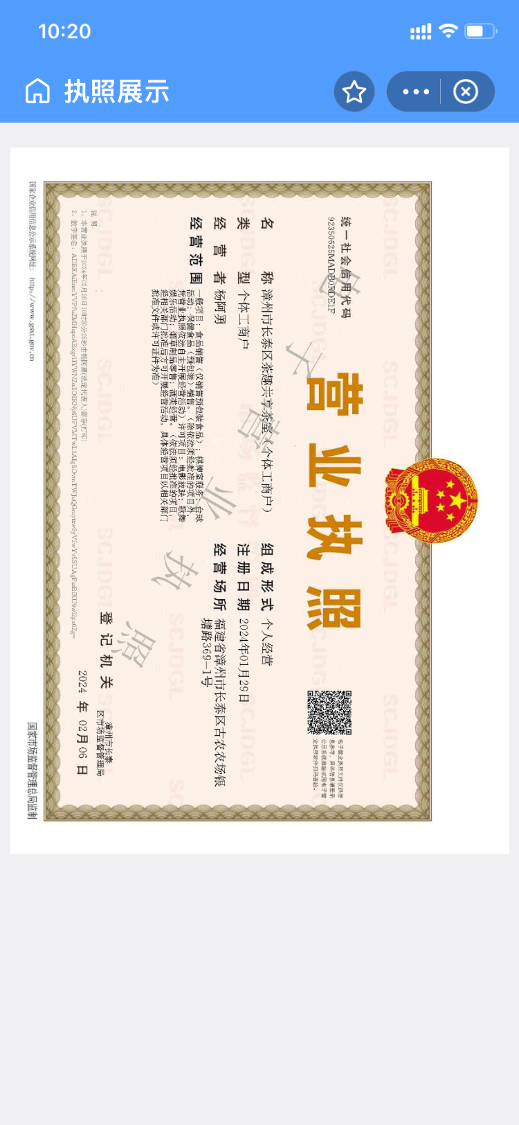 统一社会信用代码:92350625MADB0RDE1F
