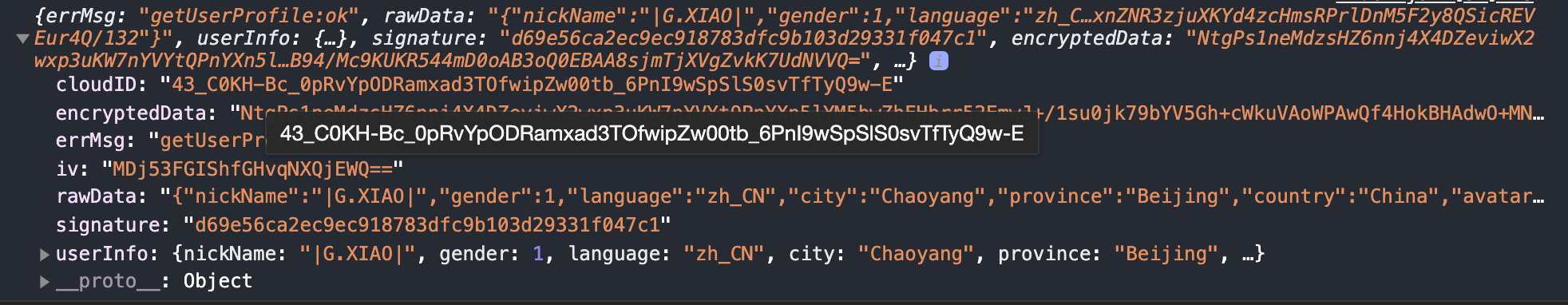 开发工具基础库版本 2.16.0,调用wx.getUserProfile,返回了 iv和rawData
