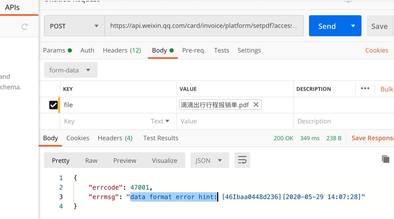 发票上传文档链接地址: https://developers.weixin.qq.com/doc/offiaccount/WeChat_Invoice/E_Invoice/Invoicing_Platform_API_List.html#3
