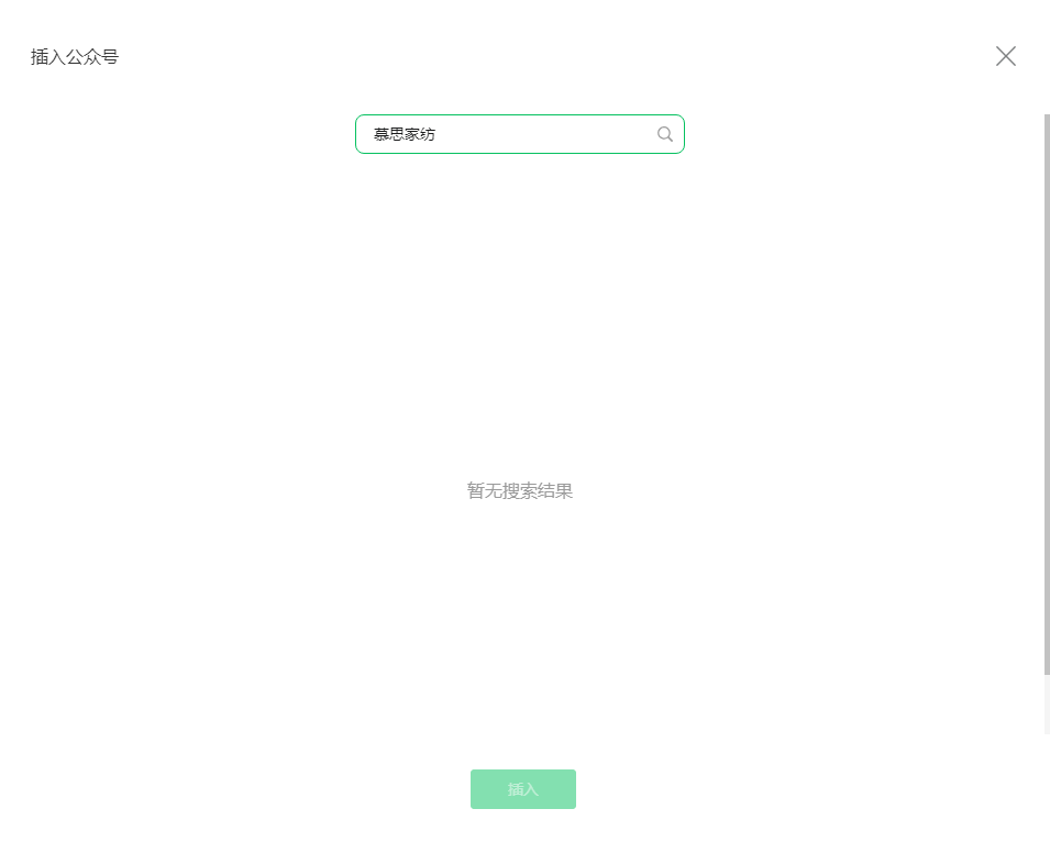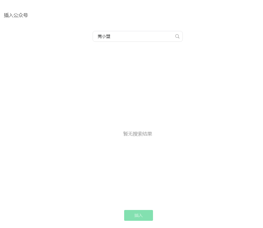 求助:微信公众号编辑页面选择插入公众号无搜索结果,搜索其他号也显示为【暂无搜索结果】。