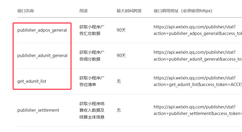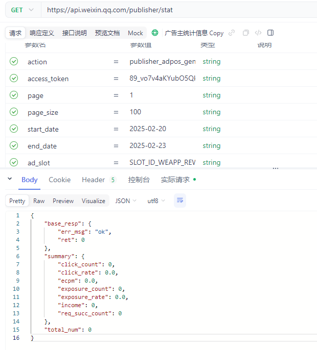 请问这是为什么呢:这前三个接口都没有数据,只有最后那个接口:publisher_settlement(获取小程序结算收入数据及结算主体信息)有数据,也不全,只有一个总收入的值。是我调用的方式有问题吗?