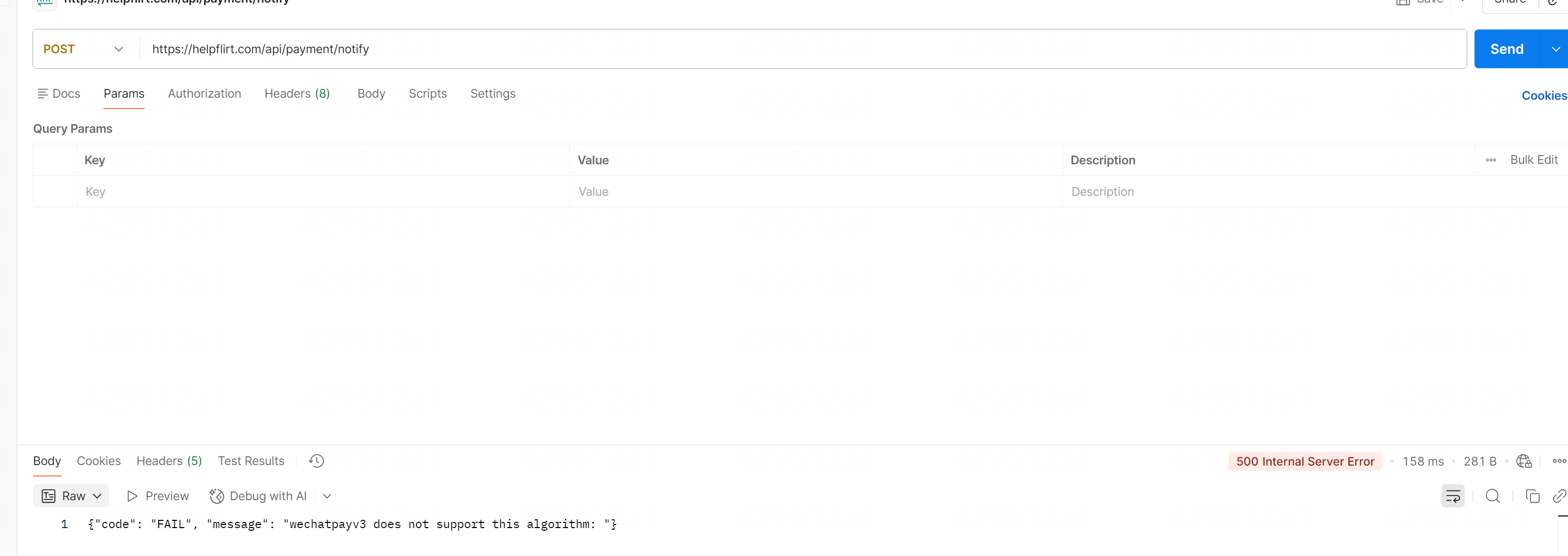 回调接口postman可以调通,但是收不到微信回调的请求。下图是用postman通过测试数据调用接口,接口能打到服务器并返回了服务器处理的结果:
