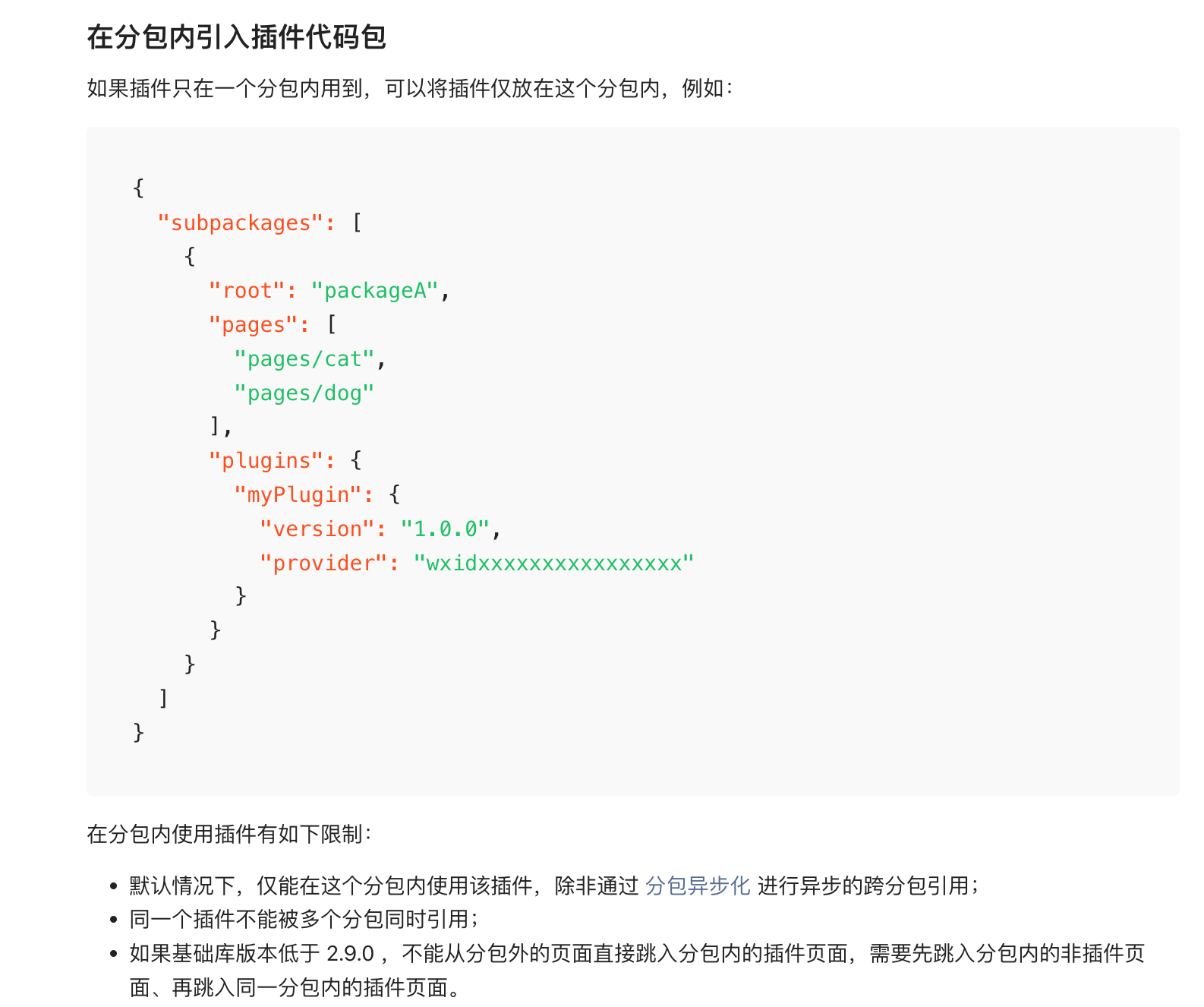 可以使用分包异步化进行异步的跨分包引用https://developers.weixin.qq.com/miniprogram/dev/framework/plugin/using.html