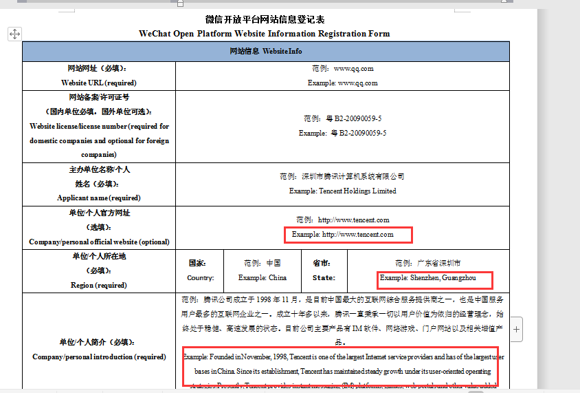 微信开放平台网站 信息登记表,国内网站需要填写英文吗?