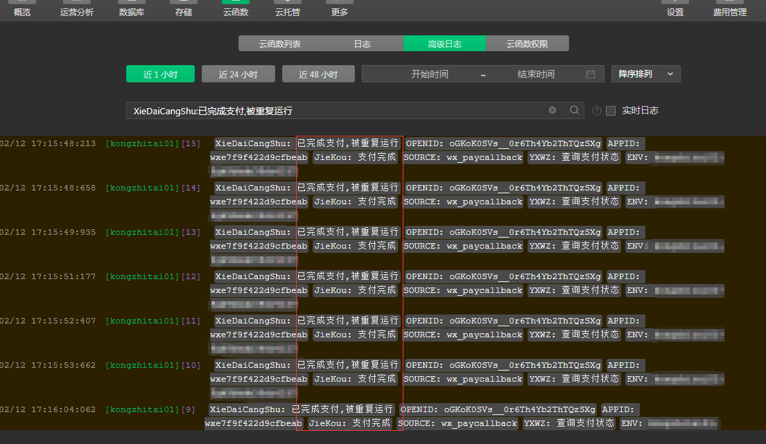 XieRiZhi("warn","支付完成","查询支付状态","已完成支付,被重复运行")//写日志这里在日志中可以查到