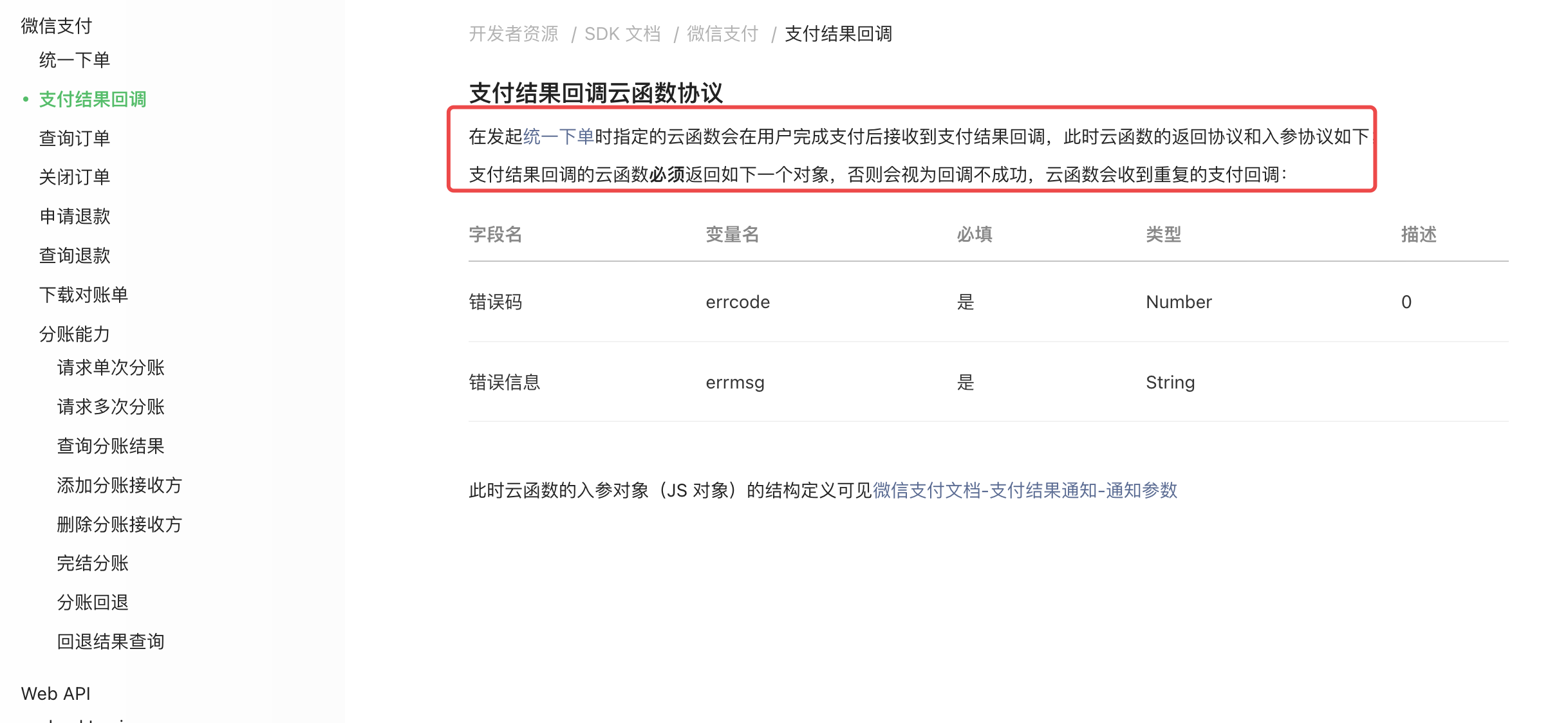 if (returnCode == "SUCCESS") { //用户支付完成后的回调函数