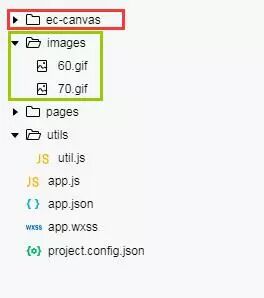测试发现,使用普通快速启动模板建立的项目,如果在项目中引用了echart的小程序插件(红框),在添加几个gif图片(绿框)就会蓝屏,此时本地代码929 KB,图片大小分别为113kb和76.3kb,如果不添加图片则可以正常预览