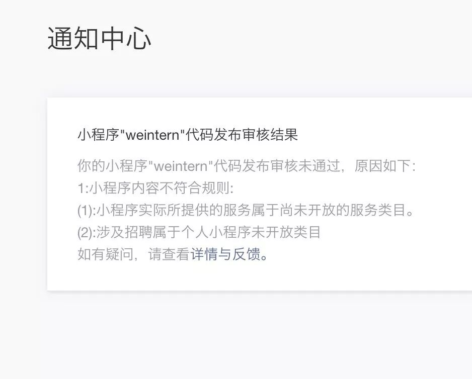 这个小程序是关于学校内部自己做的一个招聘信息查询的小程序,并不涉及到线上简历投递,简历筛选等,仅作为查询用,代码审核被退回了。因为真的是属于自己开发用来作为同学之间方便查询用的,不作为商业用途,所以这样的情况该怎么处理?麻烦了~