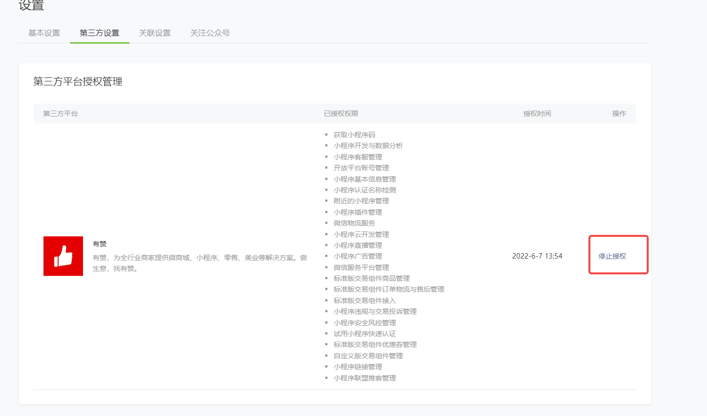 !!!是解除第三方平台授权,不是在有赞后台解绑小程序