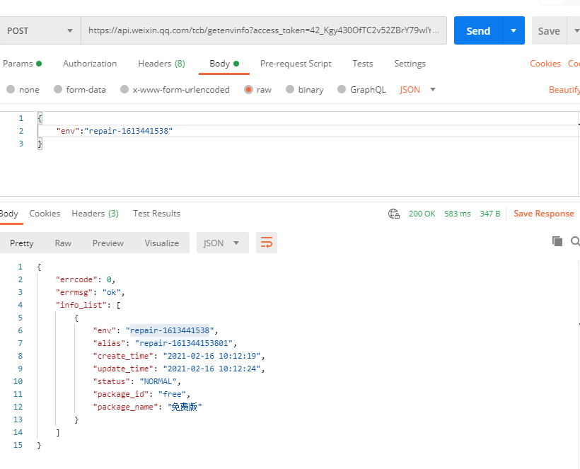 请求暂时没发现问题所在,建议先检查access_token是否有效以及云环境ID是否正确,话说你这个云环境ID是新版本吗?我这的云环境ID和这个格式不太一样。