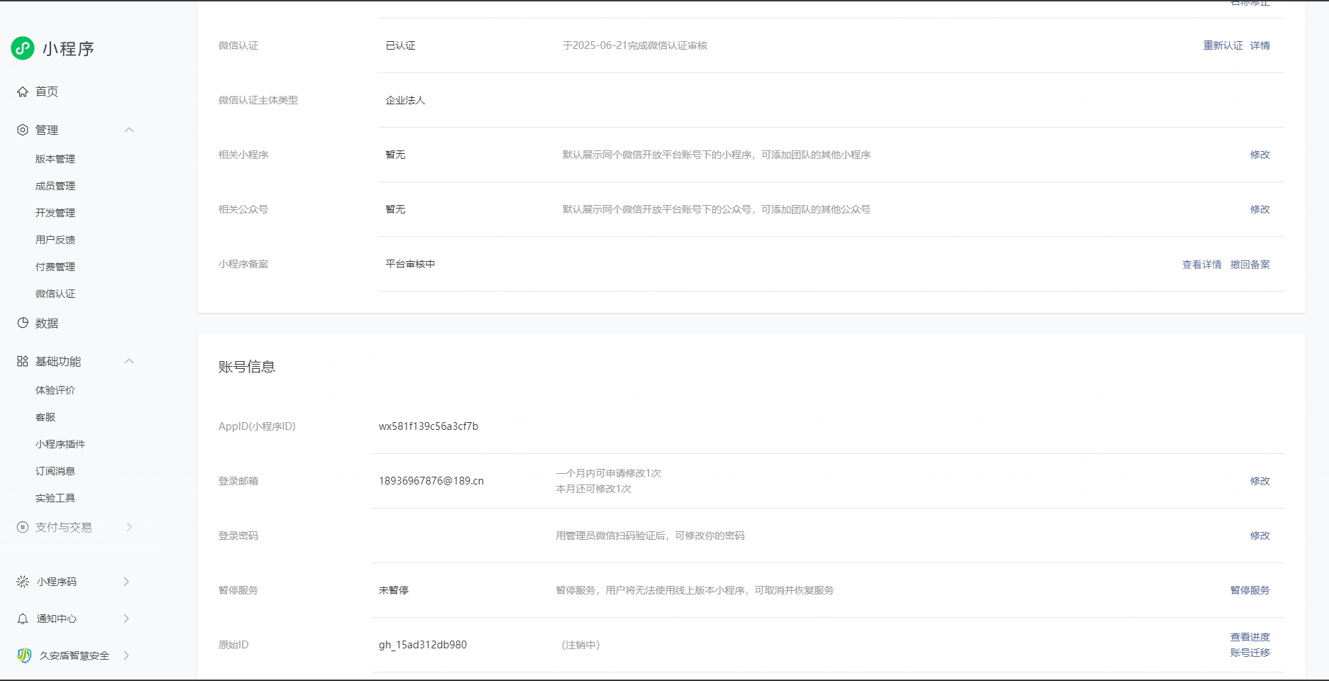 小程序主体变更已经完成,小程序备案注销也完成了,目前正在进行小程序重新备案审核中,为什么小程序原始id状态还是注销中。