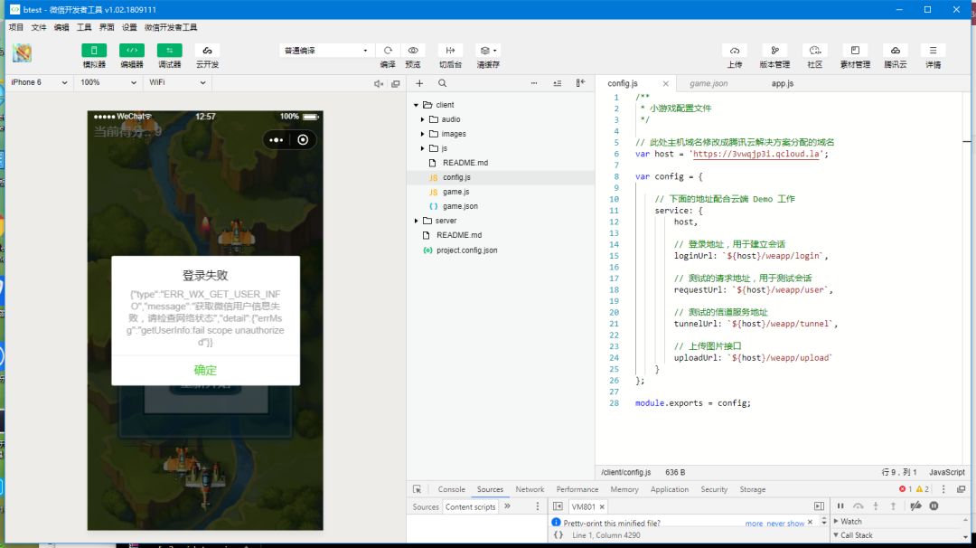 微信开发者工具点击测试登录接口提示:获取微信用户信息失败,请检查网络