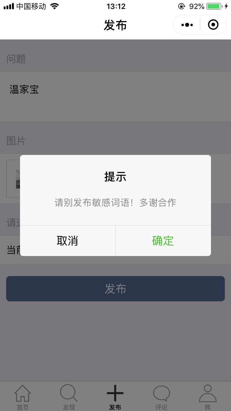 下图为我司小程序新增的内容审核功能: