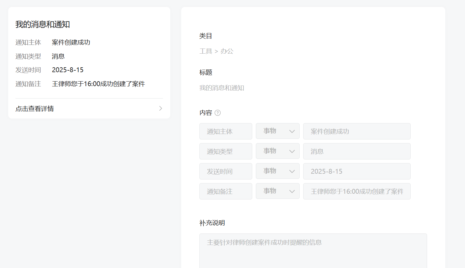你好,该号wx4464b422e75c5dff提审类目模板申请,标题【我的消息和通知】模板,驳回原因及修改建议如下: