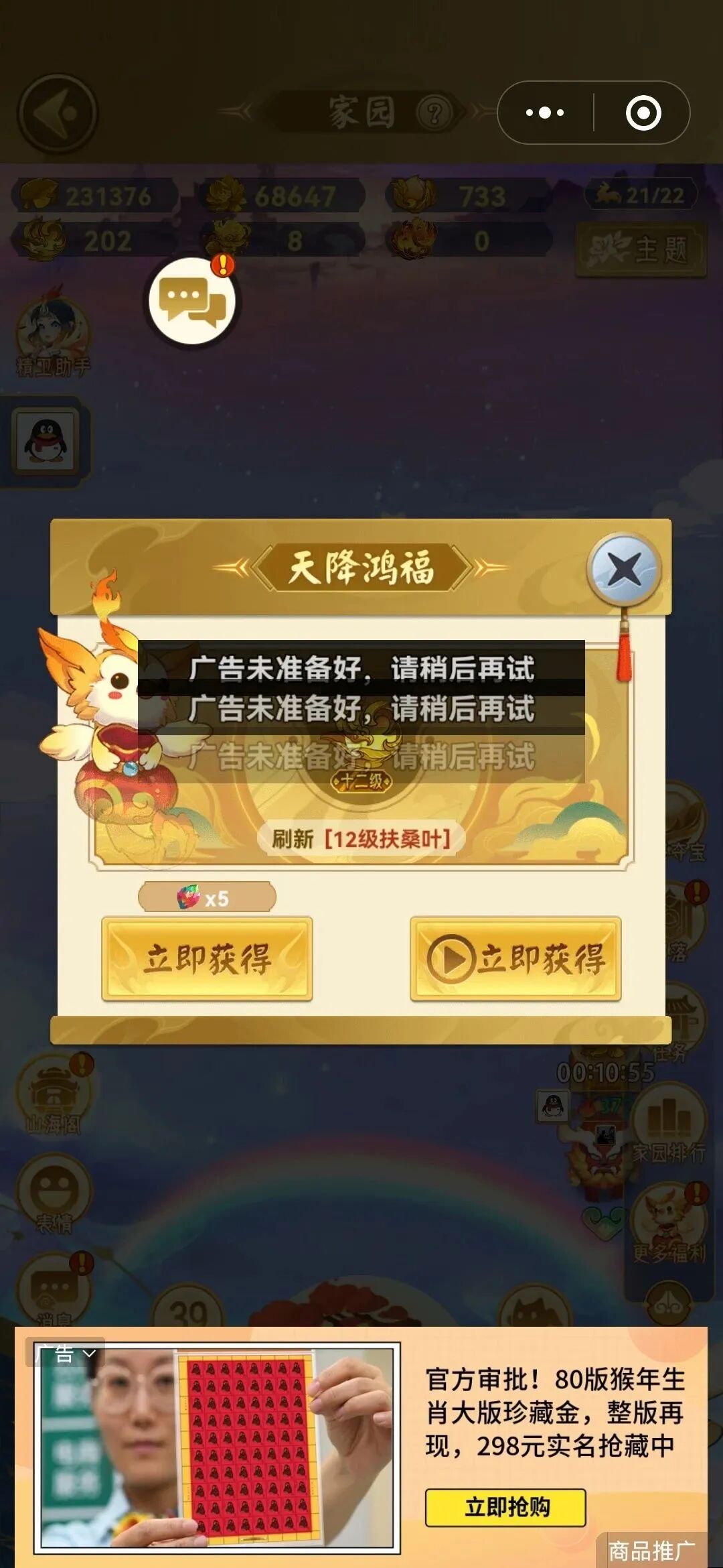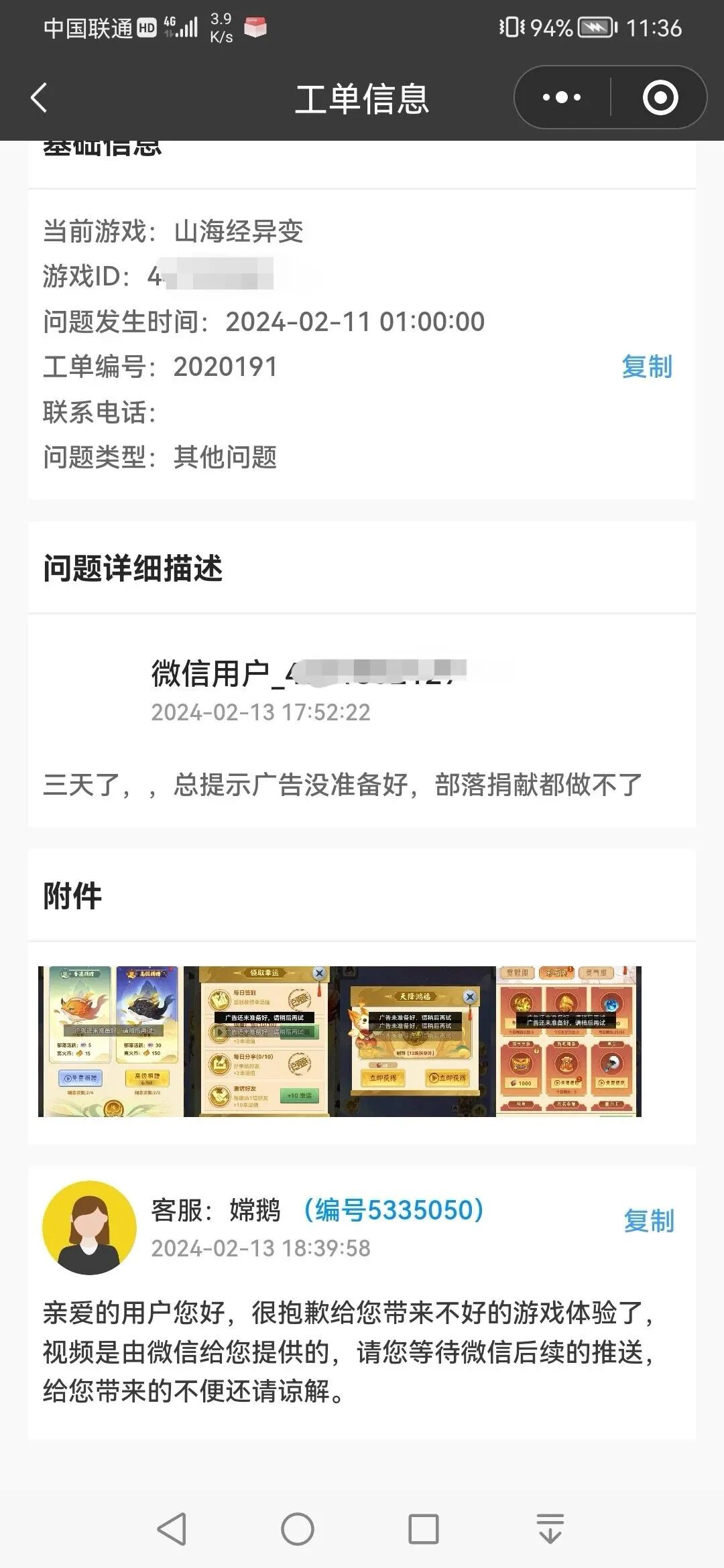 微信小程序总是看不了广告,四天了,基本任务都做不了,联系游戏客服,说是微信的问题,让等着