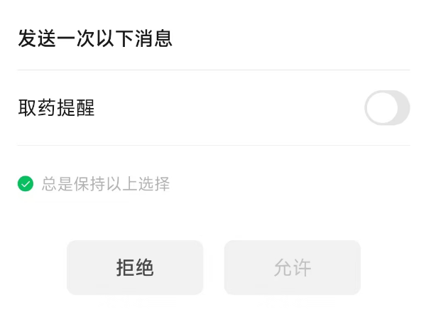 拒绝以后不会在弹出,可以通过wx.openSetting打开设置,收到选择接受