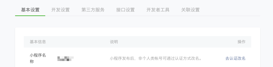 显示“小程序发布后,非个人类帐号可通过认证方式改名”: