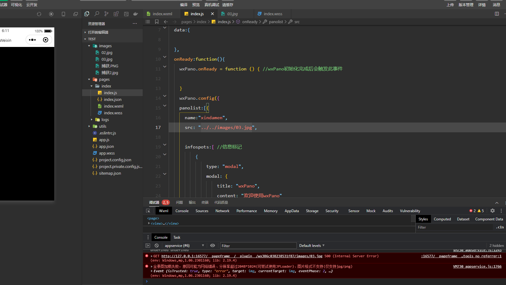 小程序主包和分包分别不能超过2M,所以你只能在本地方很小的图片,全景图什么的这种的就别想放本地了。