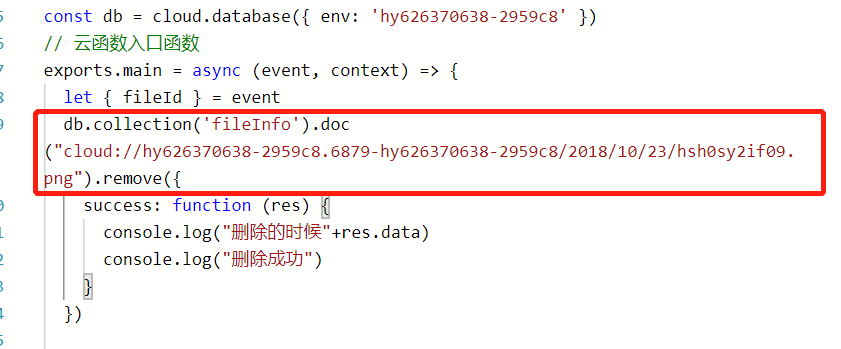 利用remove删除一条记录没反应怎么回事呢?下面是云函数代码,哪里有问题呢