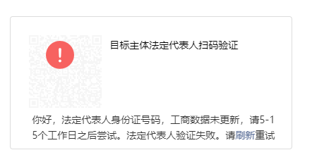 这边在做小程序迁移,选择法定代表人扫码验证一直出现这个提示,已经超过15个工作日了。