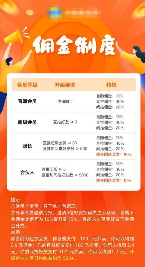 该模式大致概括就是通过我们平台下单美团或者饿了么外卖,是有返利的,我们作为平台不收取用户一分钱,但是用户上下级分佣关系如图所示,这种模式是否涉嫌多级分销呢?