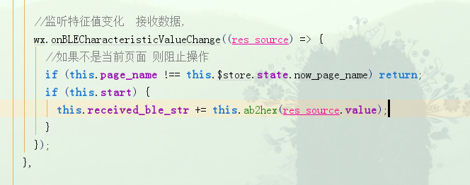下图是监听地低功耗蓝牙特征值变化API、各种打印信息