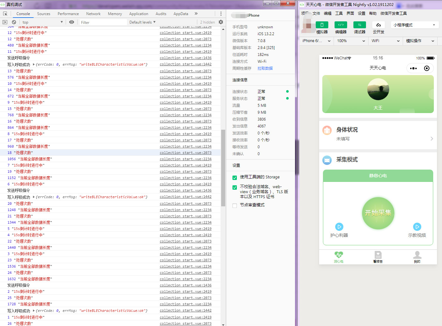 监听特征值变化的api:wx.onBLECharacteristicValueChange次数变少,从目前表象来看,原来的开发工具真机调试时IOS设备每秒要变换32次,更新完开发工具后,每秒变换1-3次左右,导致现在传输15秒的数据不足以前传输15秒数据的10%
